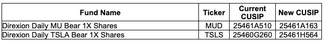 Direxion, a leading provider of ETFs for tactical traders, has announced date changes for the reverse split of the issued and outstanding shares of the Direxion Daily MU Bear 1X Shares and Direxion Daily TSLA Bear 1X Shares, (the “Funds”). The total market value of the shares outstanding will not be affected as a result of this split, except with respect to the redemption of fractional shares, as outlined below. Please see the previously communicated press release for further information on four additional reverse splits announced on February 4, 2026.